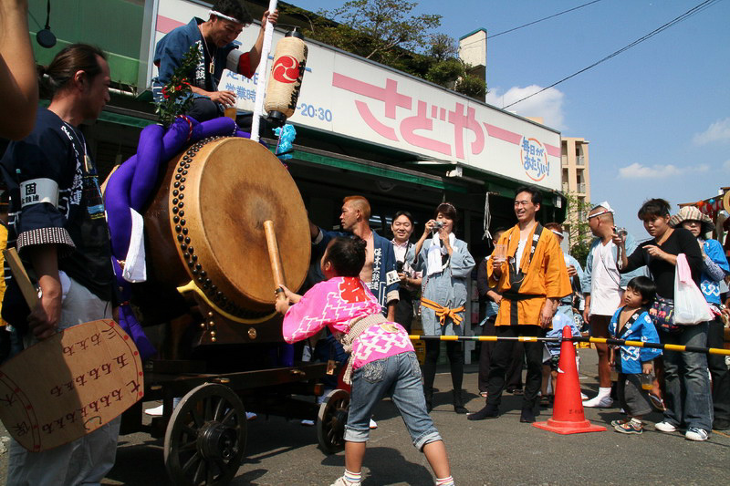 今年は太鼓連の協力で、手作りの子供御輿を作成し、町内を回りました。