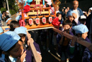 今年は太鼓連の協力で、手作りの子供御輿を作成し、町内を回りました。